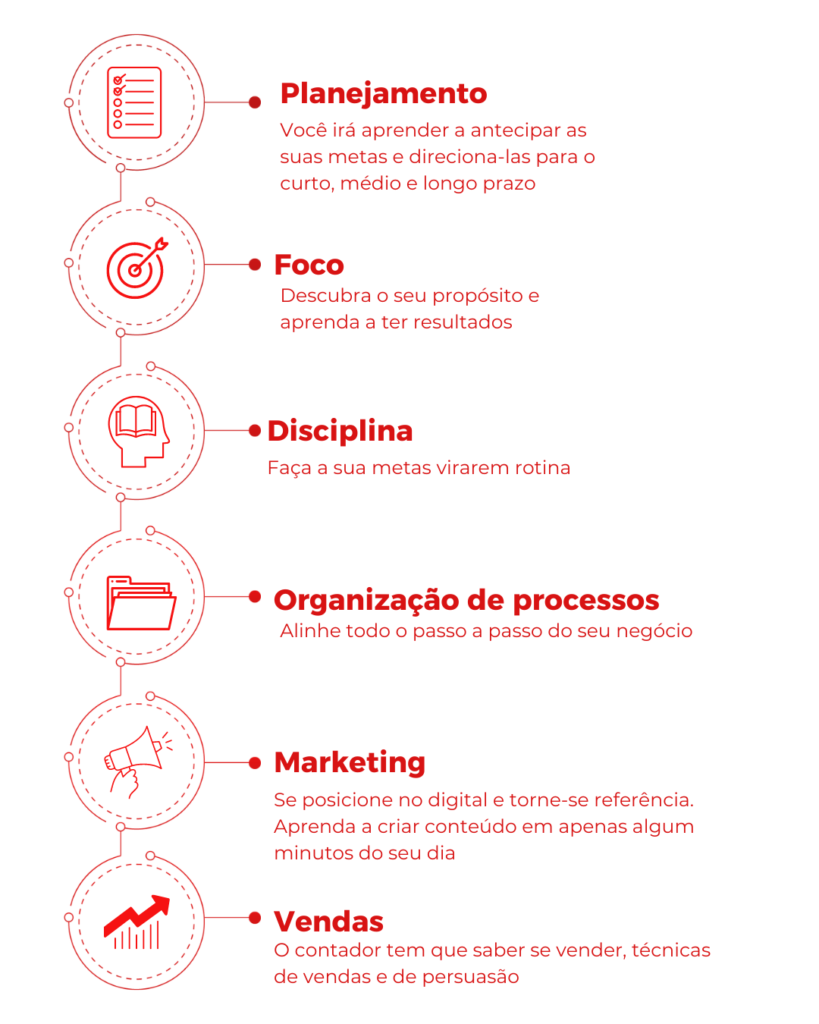Observei uma lacuna na contabilidade, onde identifiquei que tínhamos um poder imenso nas mãos para auxiliar empreendedores a conquistar o seus resultados, traduzindo as informações contábeis de forma direta e também podendo cobrar mais por esse serviço diferenciado. Comecei a prestar serviço para MEI e vi que eu conseguia cobrar pela prestação do meu serviço de forma estratégica e valores maiores do que contadores que tinha anos de experiência e que prestava serviço para empresas de médio e grande porte.